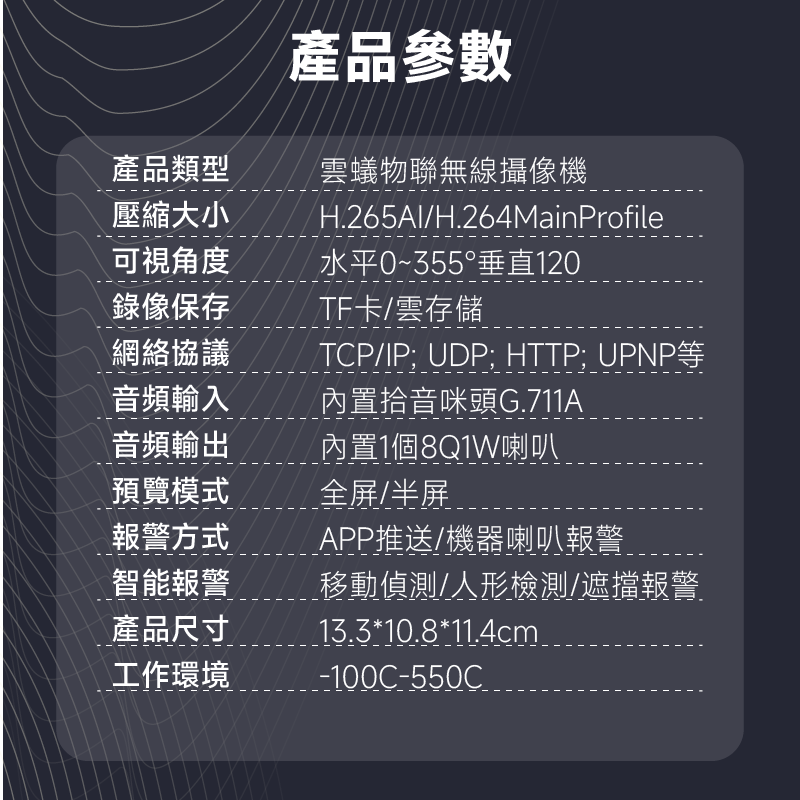 | 產品類型 | 雲蚊物聯無線攝像機 |