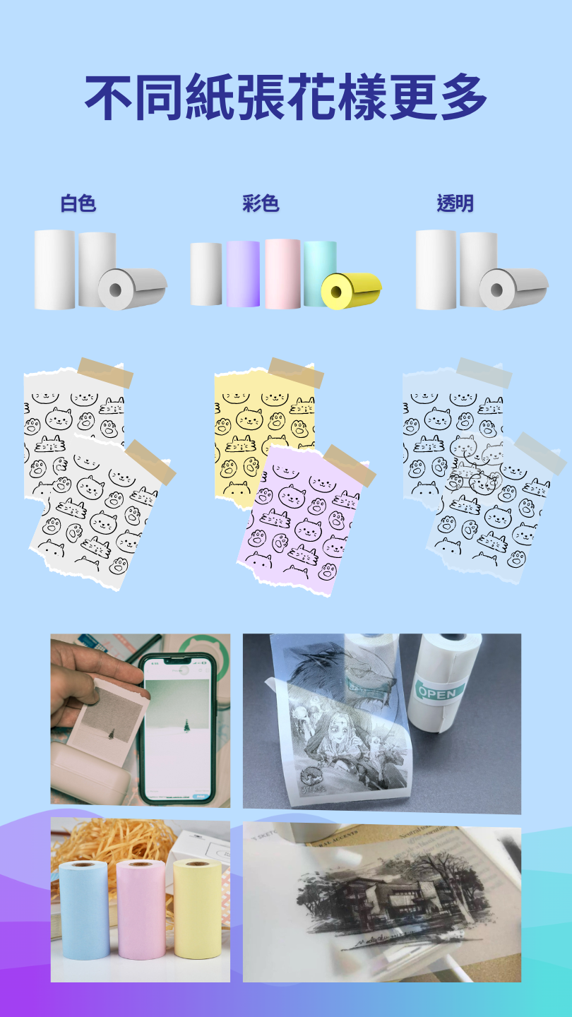 口袋打印機專用紙捲-彩色/可黏貼(3入)